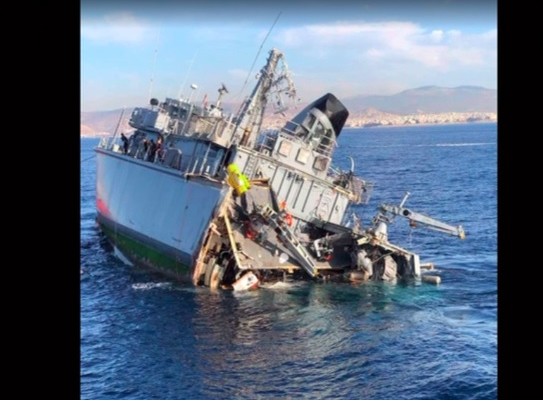 Μιλώντας στην εκπομπή «Κοινωνία Ώρα MEGA», ο δήμαρχος Πειραιά, Γιάννης Μώραλης, ανέφερε ότι το πολεμικό πλοίο ρυμουλκείται στον ναύσταθμο, καθώς ένα μεγάλο κομμάτι του έχει κοπεί.