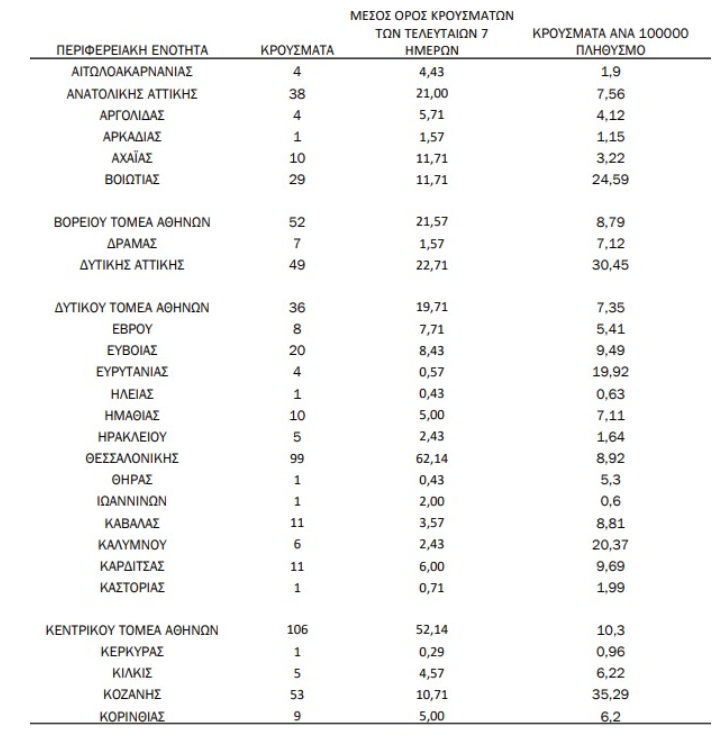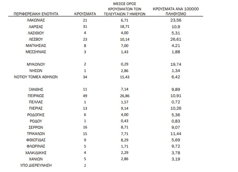 Aναλυτικά η κατανομή των κρουσμάτων: