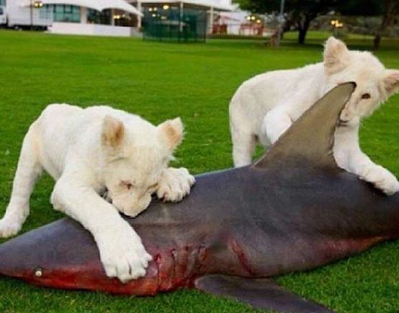 Τα λιονταράκια τρώνε για πρωινόέναν καρχαρία …