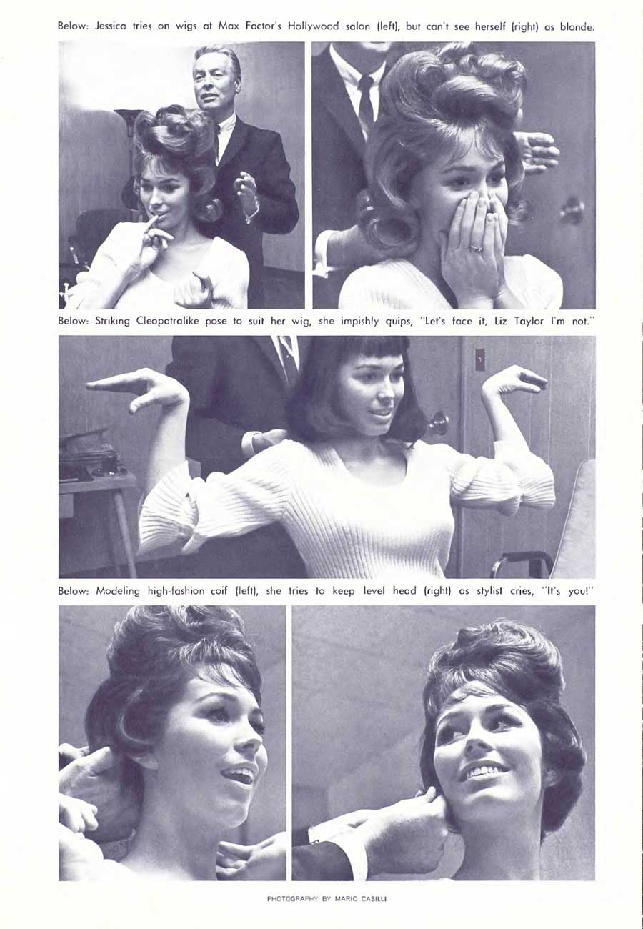 Με τίτλο «Greek Baring Gifts» το κείμενο που παρουσίαζε τη Jessica πληροφορούσε το αναγνωστικό κοινό πως η νεαρή Ελληνίδα είχε όνειρο να γίνει επαγγελματίας χορεύτρια, της άρεσαν οι ψηλοί μελαχρινοί και σοβαροί άντρες, είχε ως είδωλο την Ωραία Ελένη και τη Rita Hayworth και αγαπημένος της σταρ ήταν ο ηθοποιός George Chakiris (Gentlemen prefer Blondes, Viva las Vegas, West Side Story).